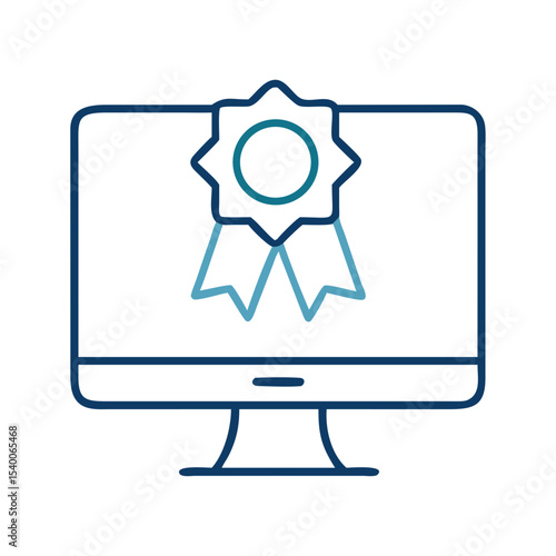 Digital Transformation Award Icon Featuring Computer Monitor and Medal for Corporate Recognition of Innovation