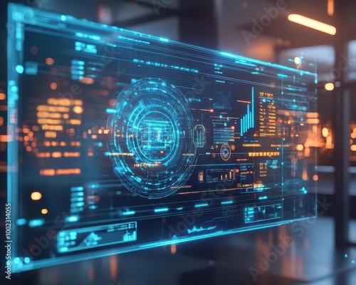 Digital transformation in an office with holographic tools automating workflows Futuristic Hologram Minimalist