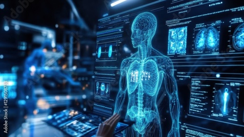 Digital transformation in healthcare, AI-driven diagnostics, futuristic medical technology, holographic patient data,