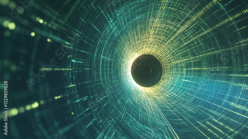 Digital Tunnel: A mesmerizing digital tunnel comprised of glowing lines and particles, creating a sense of depth and movement, representing data flow, the digital world, and technological advancement.