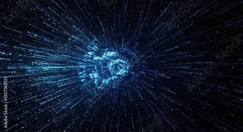 Digital Tunnel Vision: An abstract, dynamic composition of blue light and streaks, creating the sensation of movement through a digital tunnel or wormhole.