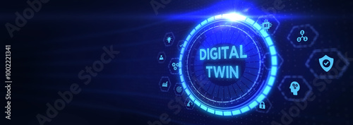 Digital twin industrial technology and manufacturing automation technology. 3d illustration
