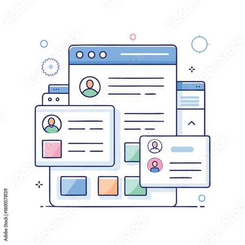 Digital user profiles and interface elements representing online identity isolated on white background