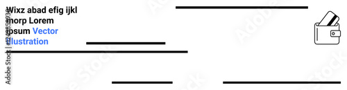 Digital wallet icon with three cards, accompanied by sample text lines in varying lengths. Ideal for financial services, digital payments, e-commerce, mobile banking, online shopping, web design