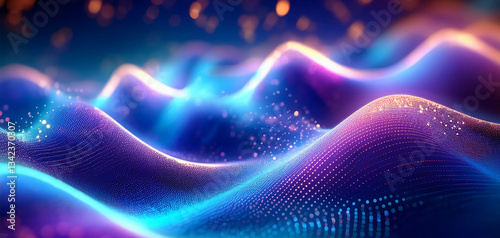 Digital waveforms in blue and purple, abstract background. Abstract digital background with flowing waves in vibrant blue and purple hues. Radiant lighting, flowing motion, deep textures