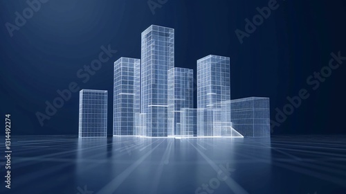 Digital wireframe of a high-rise building with reinforced concrete beam structure, AI-generated construction blueprint