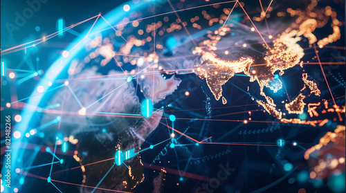 Digital world globe, concept of global network and connectivity on Earth, data transfer and cyber technology, information exchange and international telecommunications