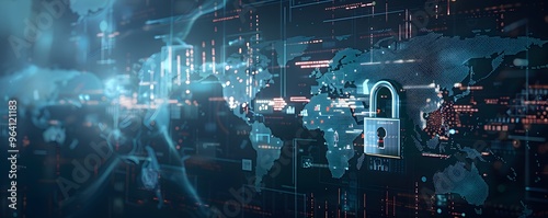 Digital World Map with Padlock and Data Overlays