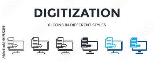 Digitization Icon In Different Style Vector Illustration. Designed In Thin Line, Regular Line, Bold Line, Glyph, Color Line, And Color Glyph Style Can Be Used For Web