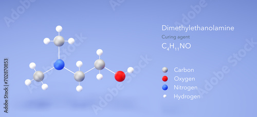 dimethylethanolamine molecule, molecular structures, curing agent, 3d model, Structural Chemical Formula and Atoms with Color Coding