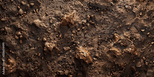 Dirt-covered ground with scattered rocks. Wilderness terrain concept