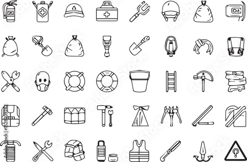disaster prevention goods elements - minimal thin line web icon set. Outline flat icons collection set vector illustration