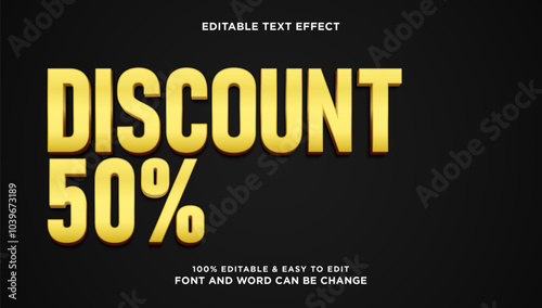 Discount text effect with 3d gold style that can be edited