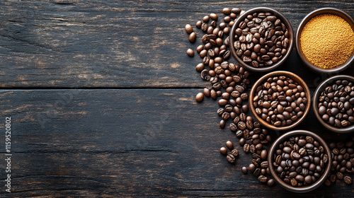 Discovering the Rich Textures of Mixed Arabica Coffee on Rustic Wooden Background