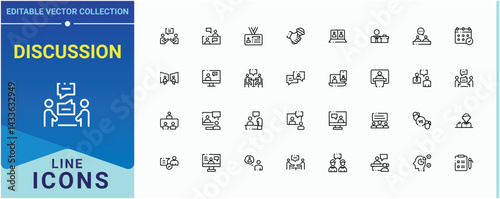 Discussion modern icon set. Contains outline symbols like employment, presentation, resume, recruit. Interview vector line icon set. Sign and Symbol. Editable vector illustration.