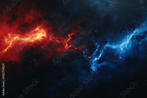 display of red and blue smoke swirls against dark background, creating fiery and dynamic effect that evokes sense of energy and movement
