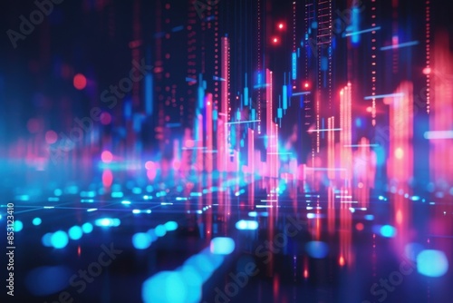 Displaying a stock market chart. Digital growth charts in blue tones. Abstract business trends