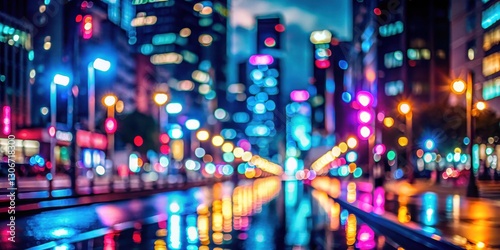 Distant Blurred Neon Lights at Night, blurred effect, urban atmosphere, blurred effect