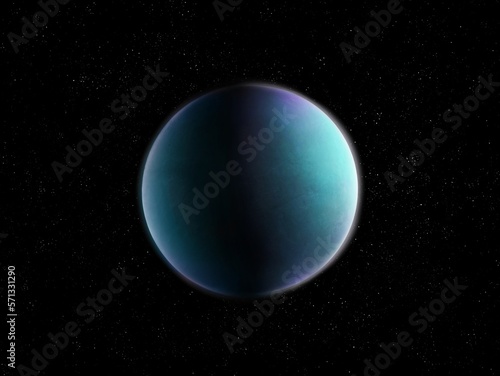 Distant exoplanet is similar to Earth. Fantasy planet, science fiction. Extrasolar rocky planet with an ocean of water.