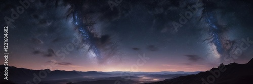 Distant planet and starry night sky with galaxy outline and nebula clouds , Universe, Space, Starry