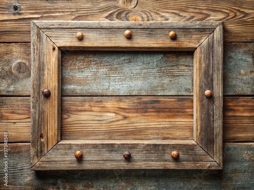 Distressed wooden frame with visible nail holes contains a minimalist UI dashboard, celebrating the beauty of imperfection and rustic charm in a muted earthy tone.