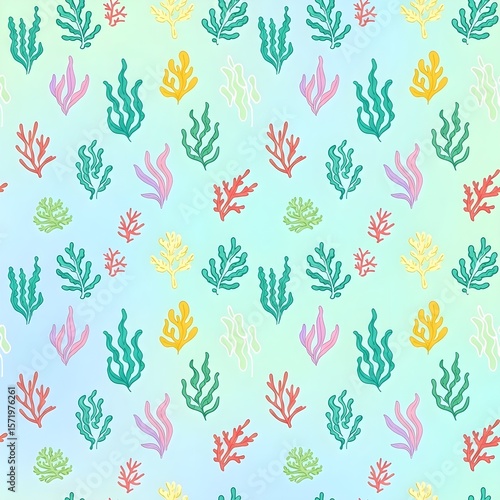 Dive into a whimsical world beneath the waves! This vibrant pattern of tiny underwater plants brings fresh energy and modern charm — perfect for fabrics, stationery, and digital designs.