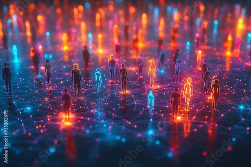 Diverse Collaboration Network abstract representation of diverse group of people connected glowing interwoven line form complex network figure depicted various vibrant color symbolizing strength
