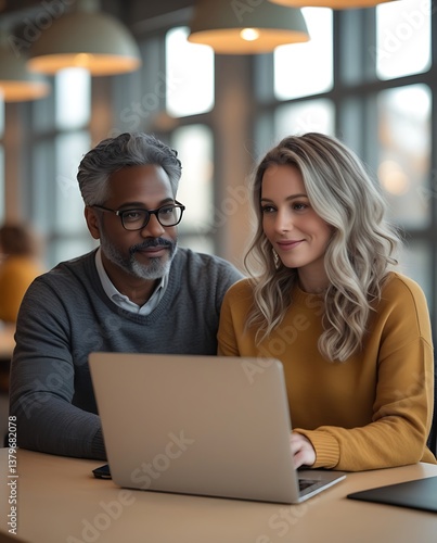 Diverse colleagues engaged in a productive work session, brainstorming and discussing strategies in a contemporary office, highlighting teamwork, efficiency, and professional collaboration.