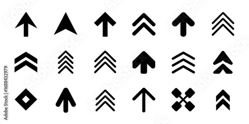 Diverse collection of modern directional arrow icons and symbols for navigation, progress, and upward movement in digital and print design projects