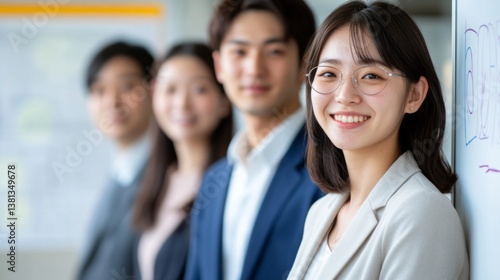 Diverse coworkers collaborating around a whiteboard in a bright modern office, captured in a candid brainstorming moment