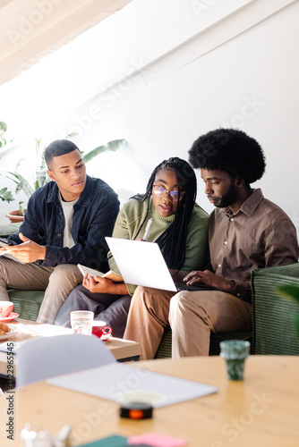 Diverse coworkers engages in a joint brainstorming session