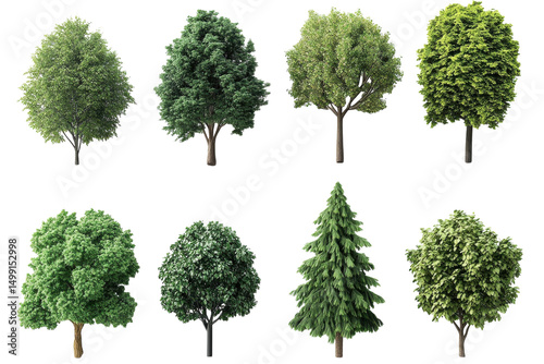 Diverse Green Trees Assortment Nature Foliage Botanical Elements Landscaping Woodland Forest on transparent background
