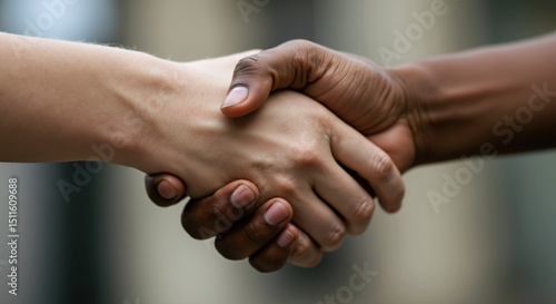 Diverse handshake african american caucasian hands business partnership agreement. Professional collaboration teamwork unity equality inclusion diversity concept