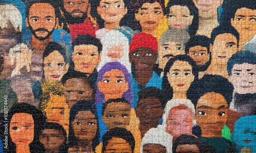 Diverse puzzle of multiracial people coming together in unity.