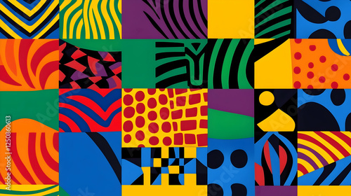 Diverse shapes come alive in a colorful collage, celebrating creativity and artistic expression