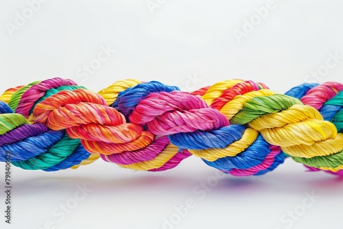 Diverse Strength Partnership: Colorful Braided Rope Symbolizes Cooperative Power