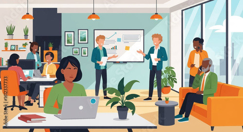 Diverse team collaborating in a modern office, perfect for website banners or presentations.