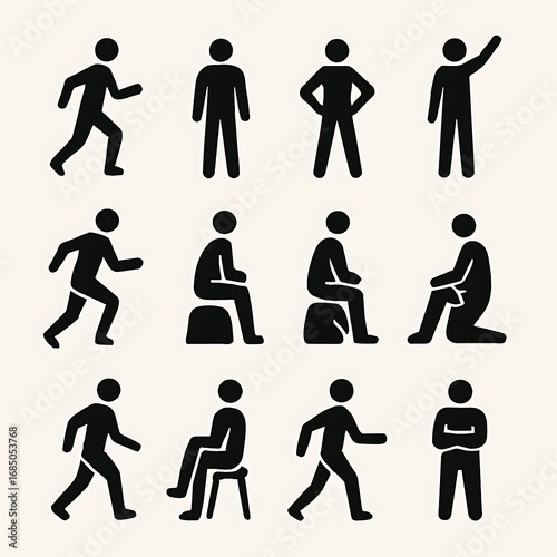 Diverse Vector Set of Human Figures in Various Poses and Actions Representing Activity and Communication