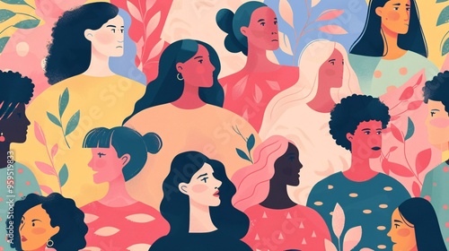 Diverse Women Group Portrait Illustration Female Empowerment Diversity Inclusion