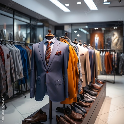 Diversity of formal clothes hanging in modern retail shop.