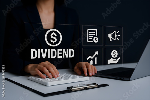 Dividend ,Laptop holographic UI showing dividend distribution.