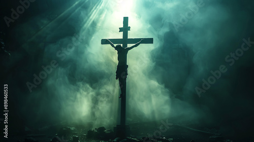 Divine Light: Dramatic Depiction of Jesus Christ on the Cross with Copy Space