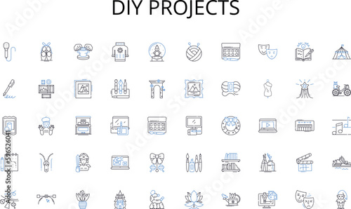 DIY projects line icons collection. Education, Learning, Training, Institution, Scholars, Curriculum, Excellence vector and linear illustration. Scholarship,Program,Instruction outline Generative AI