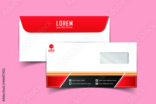 DL Envelope template front and back view. Template for advertising, branding and corporate identity. Envelope with window. DL Envelopes mockup for design. Vector illustration. EPS 10