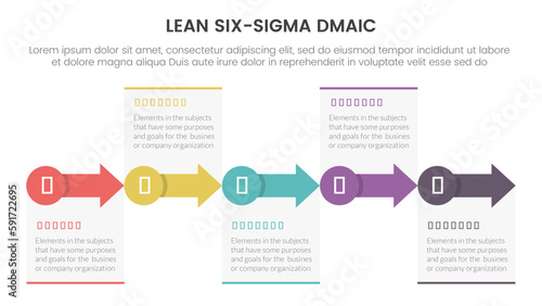 dmaic lss lean six sigma infographic 5 point stage template with small circle and arrow right direction concept for slide presentation