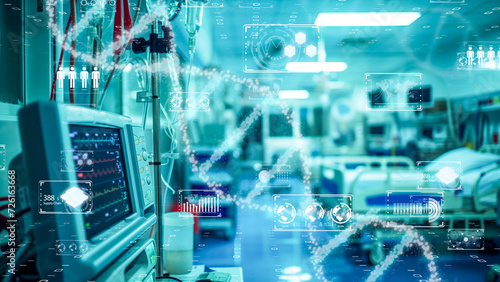 DNAとグローバルを背景とした先進医療・遠隔治療のイメージ 先進技術を使った新しい治療法。