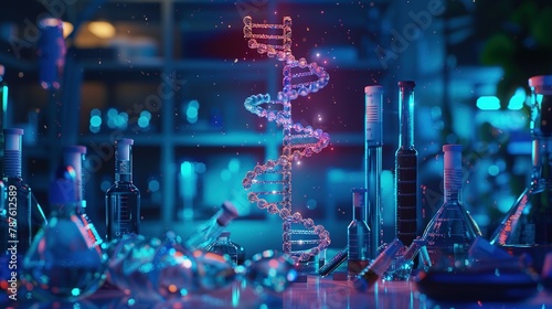 DNA double helix. DNA molecule structure. Medical science research of chromosome DNA genetic biotechnology in human genome cell. Science laboratory experiments analysis and genetic engineering study.