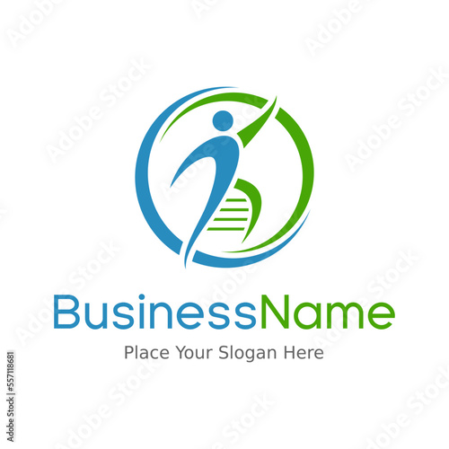 DNA genetic vector logo template. Leaf icon, human and chromosome. This logo is suitable for health, pharmacy, medical, business, body and icon.