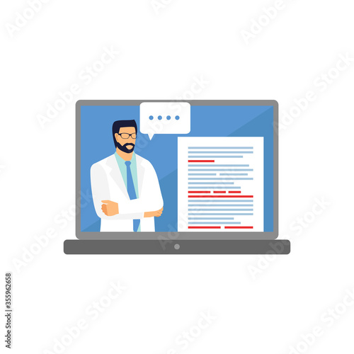 Doctor on the screen, concept of online diagnostics, vector illustration in flat style. online medical application.