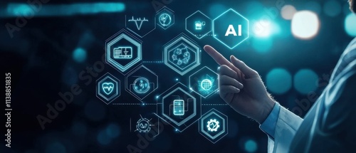Doctor Interacting with Futuristic AI Medical Technology Interface
